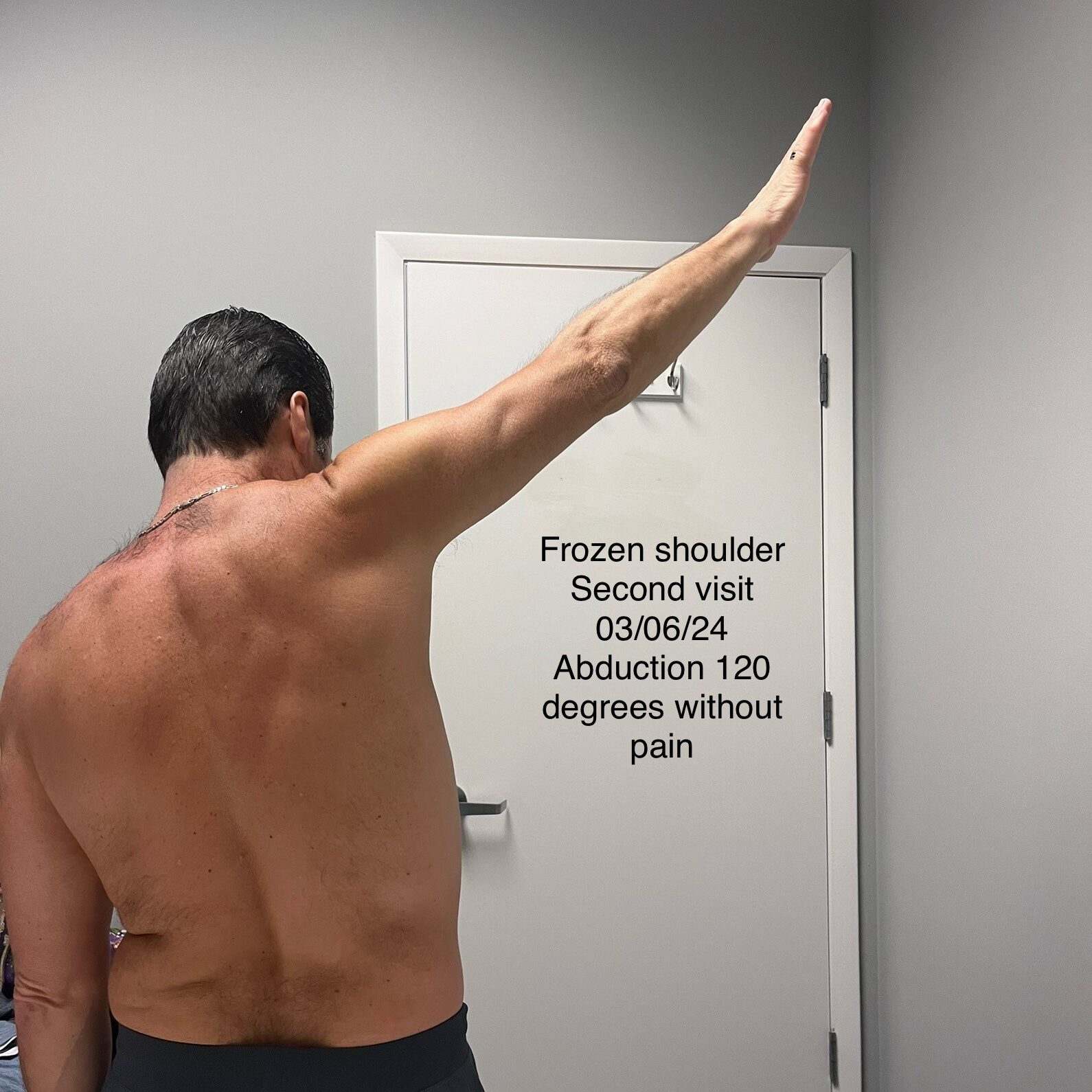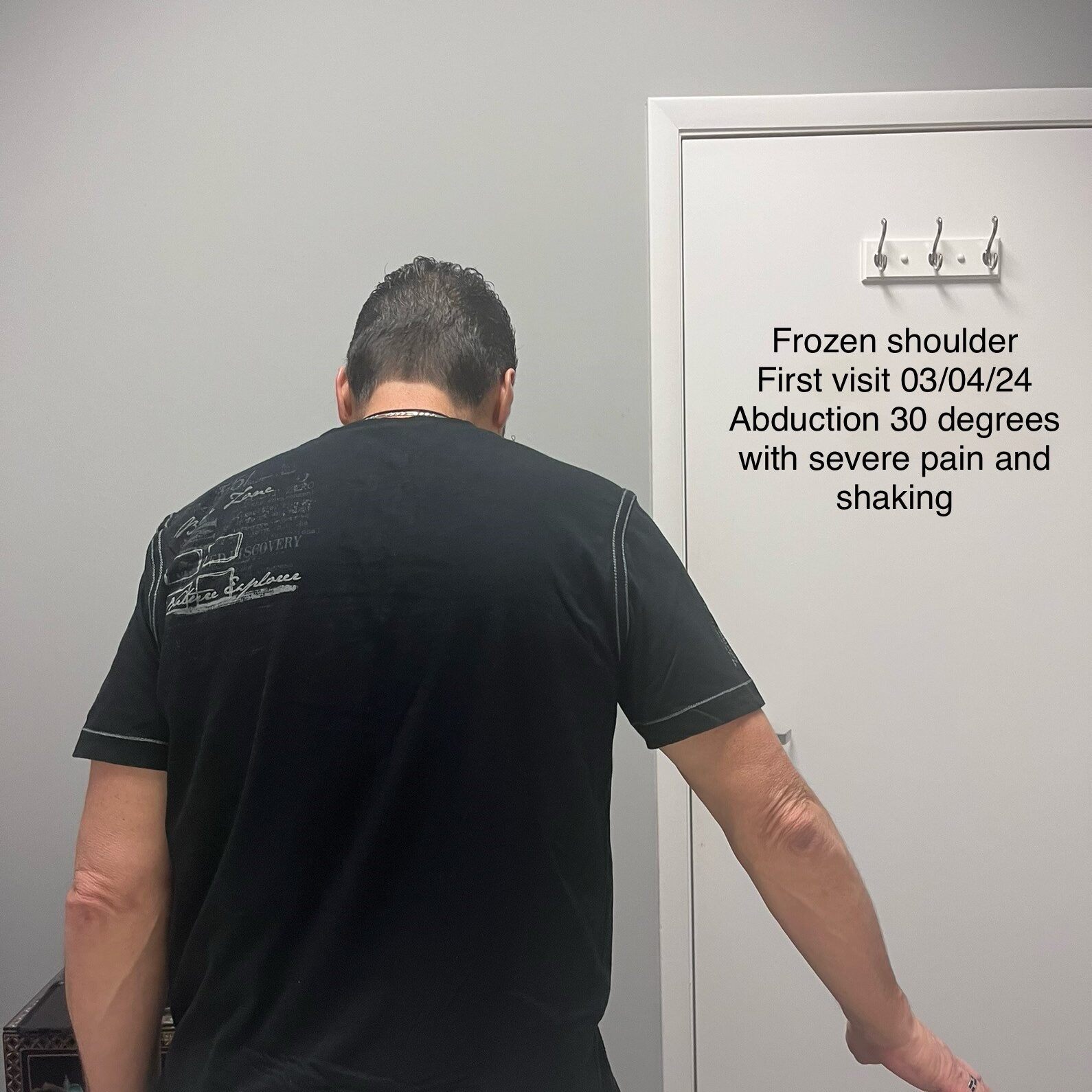 Frozen shoulder | First visit 03/04/24 | Abduction 30 degrees with severe pain and shaking